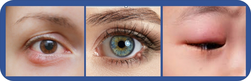 겉다라기 및 속다래끼 : 겉다래끼와 속다래끼는 눈꺼풀 마이봄샘 부위가 세균에 감염되어서 발생하는 것으로 초기에는 눈꺼풀이 불편해지는 느낌을 받습니다. 간지러움과 동시에 통증도 발생할 확률이 높고 눈꺼풀이 뻐근해지면서 빨갛게 부어오르고, 시간이 지나면서 염증이 딱딱하고 동그랗게 뭉치면서 증상이 악화되는 특징을 갖습니다. 증상이 심하지 않을 시에는 자연적으로 치유가 될 수도 있지만 안약이나 항생제를 처방받았음에도 불구하고 압통이 계속 커질 경우 절개를 통해 배농 시켜야 합니다.