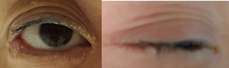 앞서 말씀드렸다시피, 눈가 피부에 홍반이 생기고 그 위에 물집들이 생성되는데 대부분 가려움증과 따가움, 화끈거림 등을 동반합니다. 첫 감염일 때는 증상이 재발했을 때의 증상보다 더 심하고 합병증이 동반되는데요.